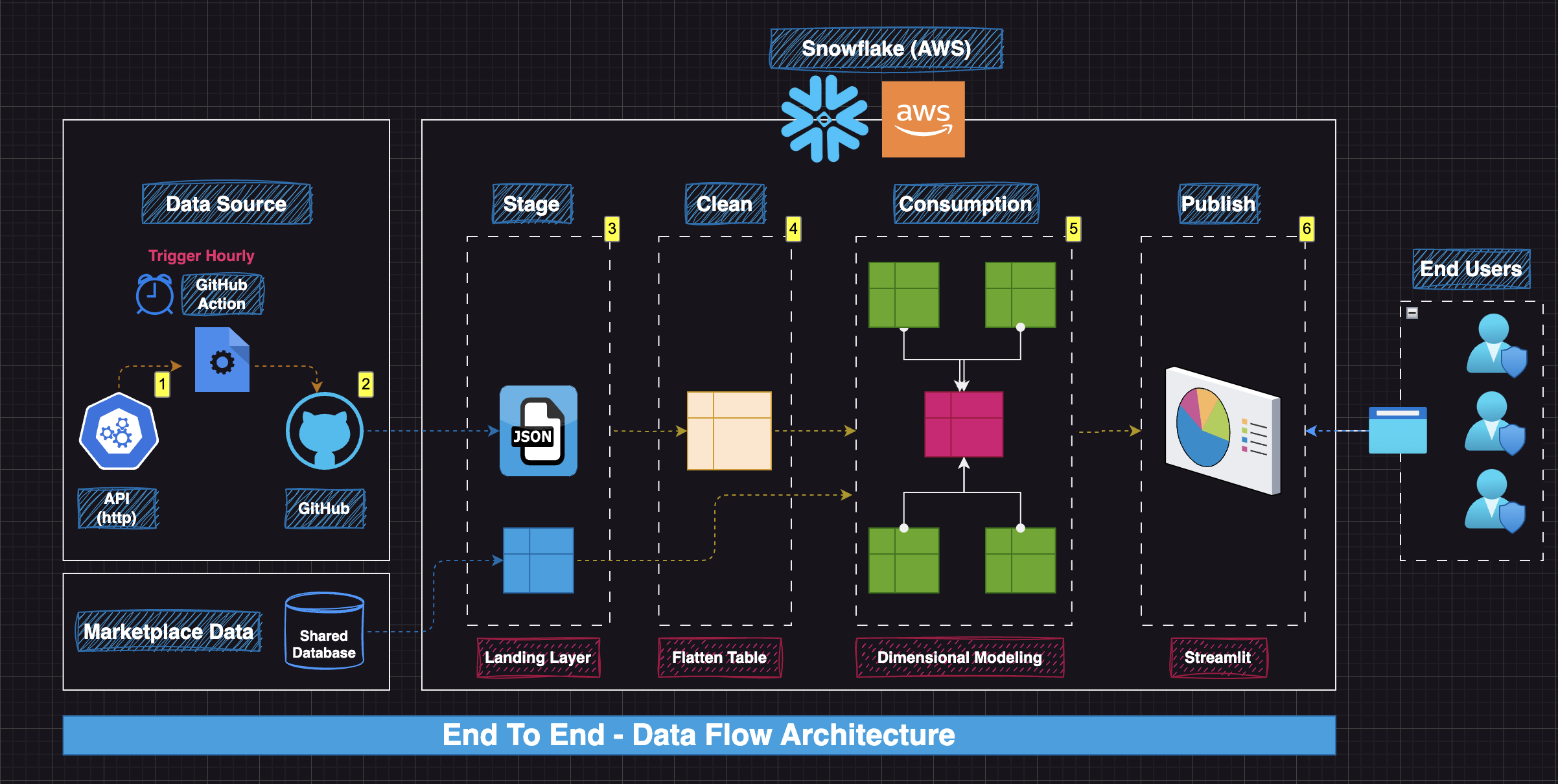 An organization wants to build a centralized data platform that aggregates global Air Quality Index (AQI) data from multiple monitoring stations and supports an interactive dashboard, allowing users to explore both real-time and historical air quality and pollutant levels with ease.